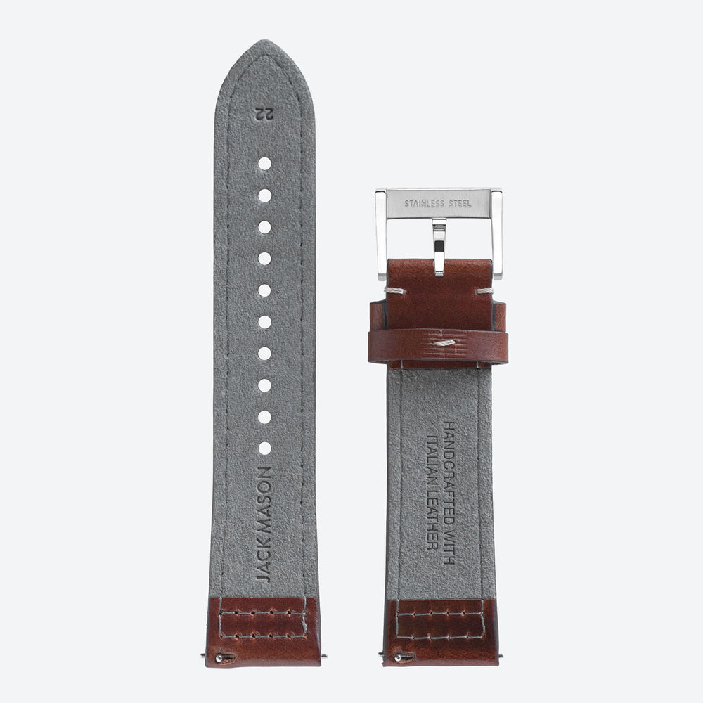 Jack Mason watches are made with the individual in mind. This boxed stitching provides transforms your watch to a more rugged look. With quick release pins and styles ranging from classic Italian Leather to casual Nylon, our interchangeable strap program allows you to tailor your Jack Mason watch to you. The Alcantara backing is resistant to persperation and breathable, making it a comfortable strap that will last.