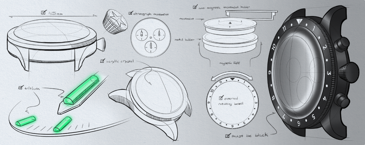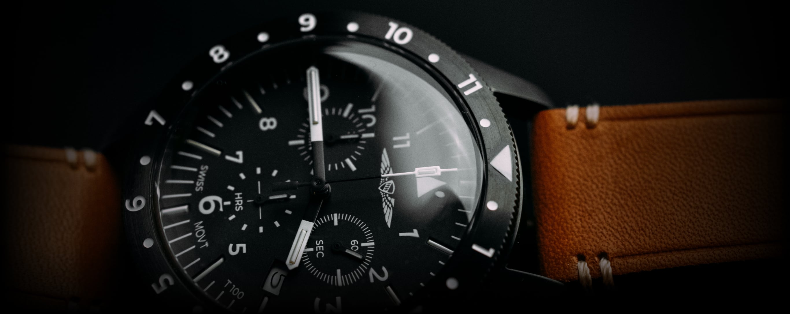 We utilized Swiss Super-Luminova, the highest grade luminescent paint on the market, to highlight the sub-dials and bezel. This, in combination with the tritium markers, makes for an incredibly legible watch for night flights.