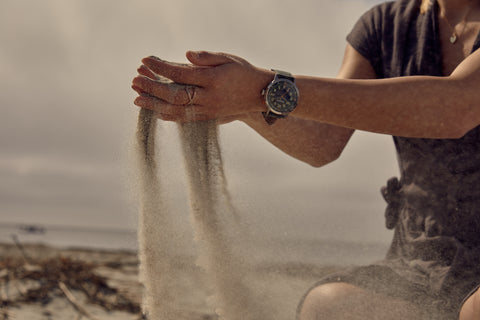 During the process of exploring sustainable materials, the biggest challenge was creating an environmentally friendly watch without sacrificing style and quality. We chose the solar-powered movement not only for its lifespan and use of earth’s most available resource but also for its subtle encouragement to get outside and recharge it.