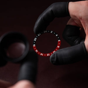 The Black Widow features a two-piece ceramic bezel insert that has been engineered with extreme precision for a seamless, unified look. The bezel is composed of two perfectly seated ceramic segments, precisely aligned to achieve the look of one solid form. This naturally resilient material makes for a highly scratch-resistant bezel. Additionally, the markings and numerals are set in reverse relief and filled with Swiss Super-LumiNova®.