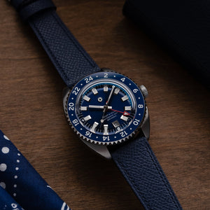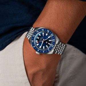 The mechanical, self-winding Miyota 9075 movement allows for accurately tracking two different timezones simultaneously. The traveler GMT functionality grants the ability to adjust the local time via the crown without affecting the 24 hour hand or stopping the watch. Every movement is regulated in-house to maintain an accuracy tolerance of +/-5 seconds per day.