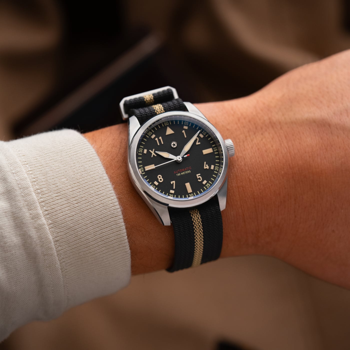We’ve partnered with Spring Made to create the perfect compliment to your Jack Mason watch. The Nylon Field strap is hand-crafted in Utah with the same attention to detail as our watches. Not only does it keep your watch and strap looking cohesive, but it also ensures the perfect fit every time.