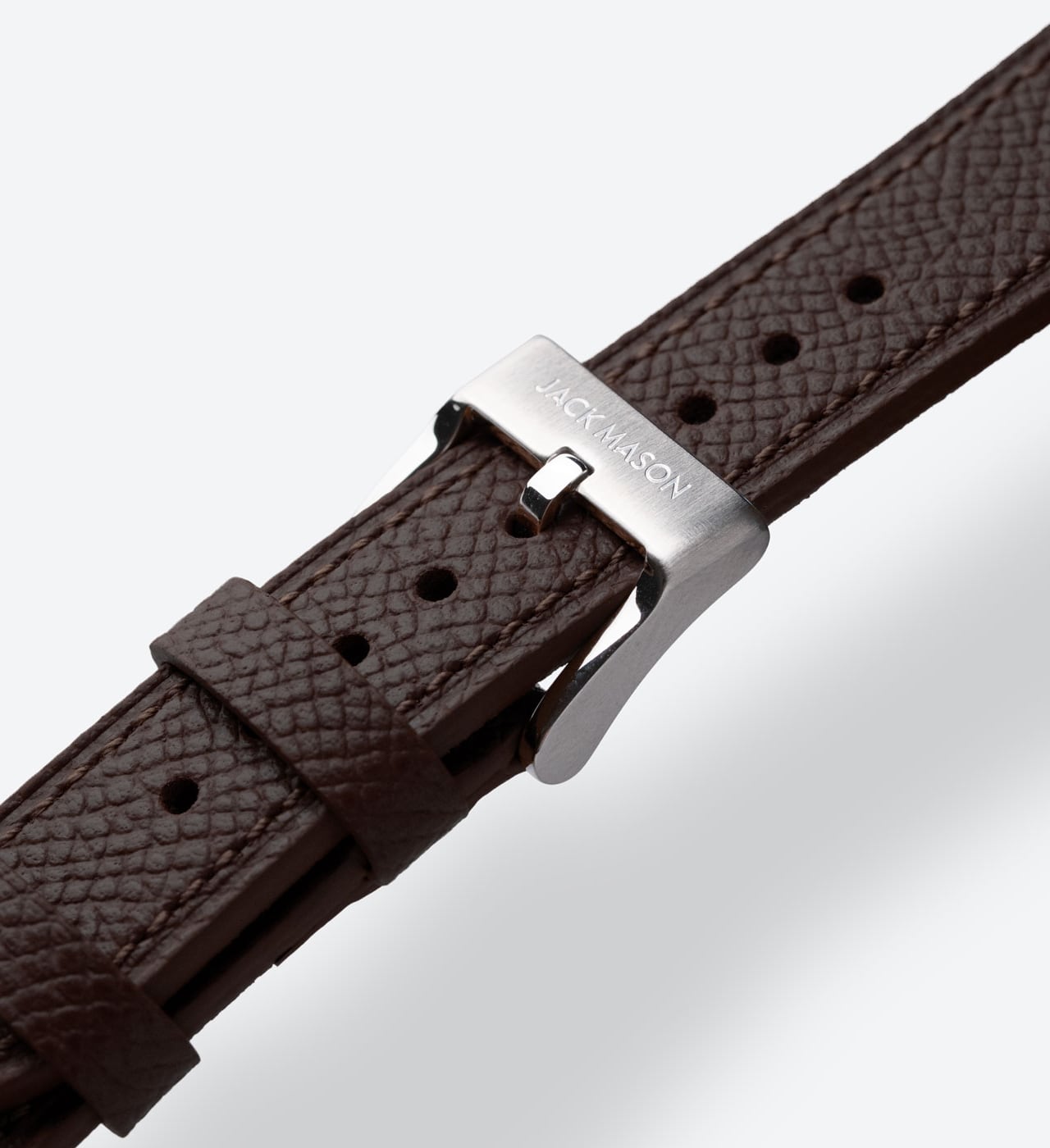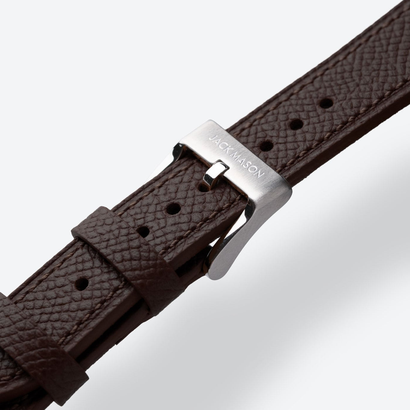 Leather straps are an excellent way in enhancing the look of your watch to match your own unique style. Utilizing Epsom leather from European tanneries ensures the quality is on par with the most high end luxury leather goods. The flat construction with a soft filler guarantees no break in period and makes it easy to wear out of the box. With considered stitch length and gauge combined with a refined heat crease along the perimeter, every detail has been thought through. Jack Mason straps feature an alcantara lining which acts as a natural moisture wicking material and feels great against the skin. The straps taper from 20mm to 16mm.