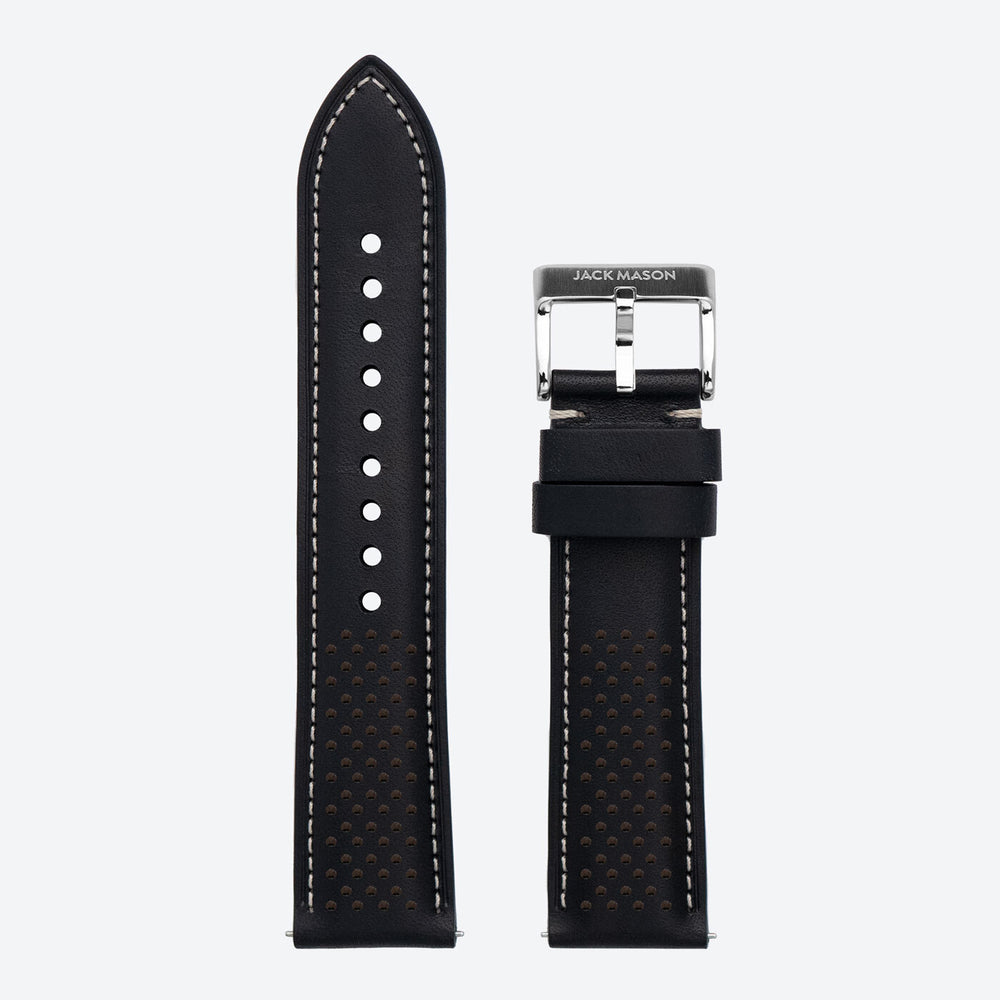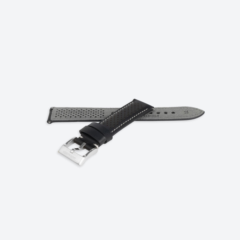 22mm perforated Black Leather Strap
