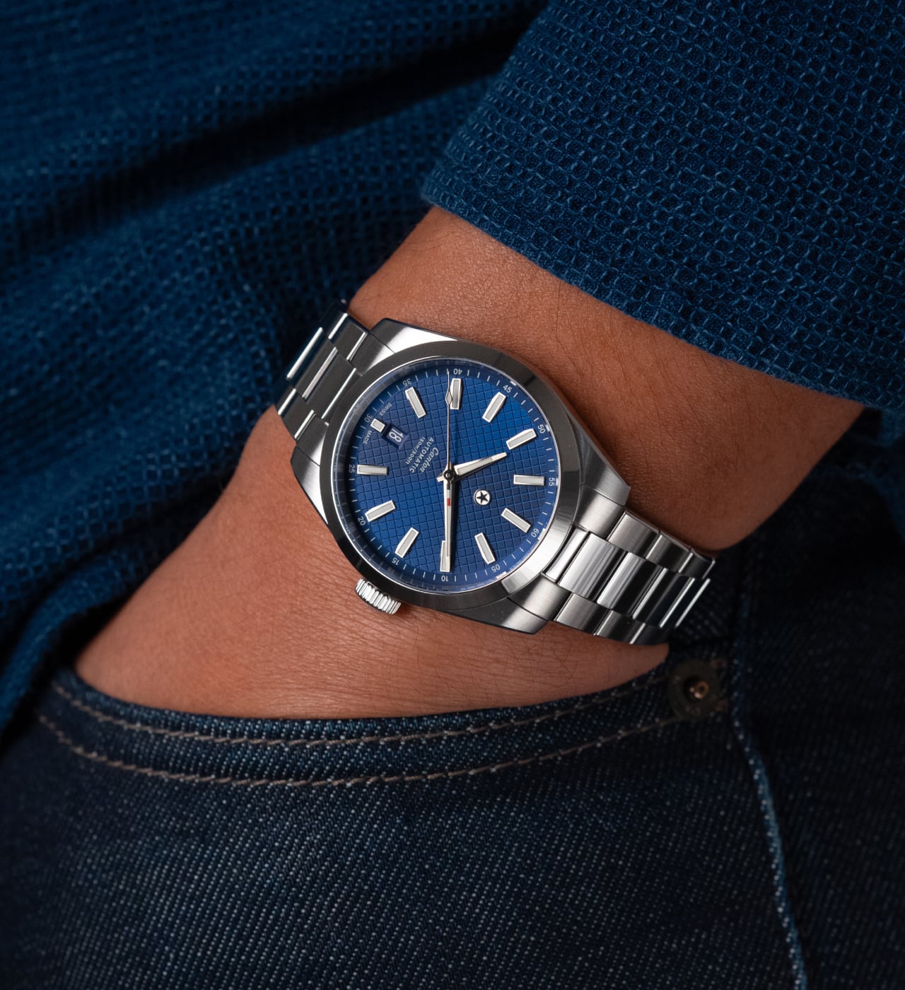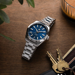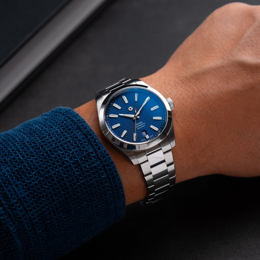 The Canton’s 316L stainless steel bracelet features a concealed, tool-free system for on-the-go micro-adjustments. The clasp has been carefully engineered with 9 levels of fine-tuning to ensure the perfect fit on a broad spectrum of wrist sizes. While being worn, all the clasp’s mechanics stay hidden out of view to preserve the bracelet’s refined and uniform look.
