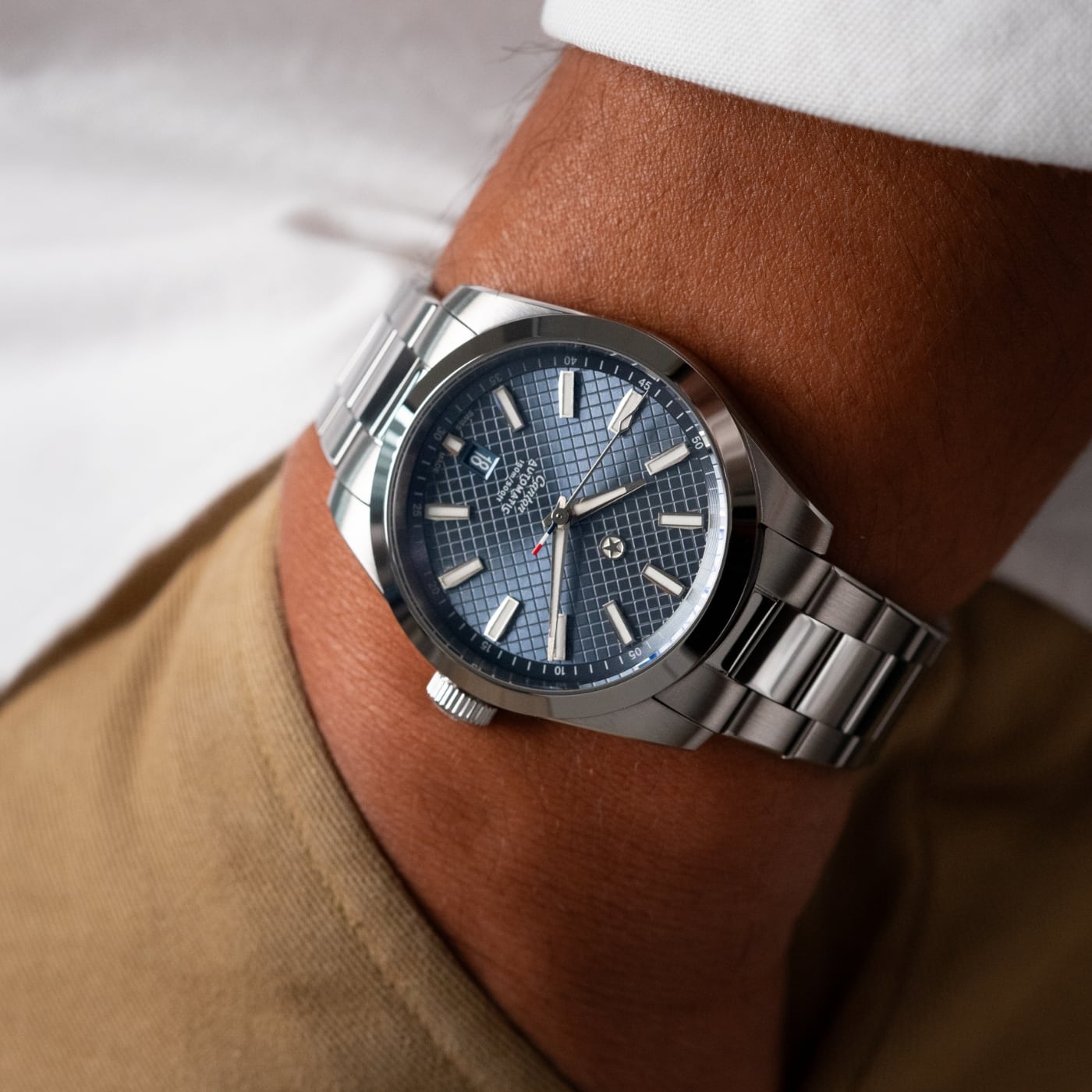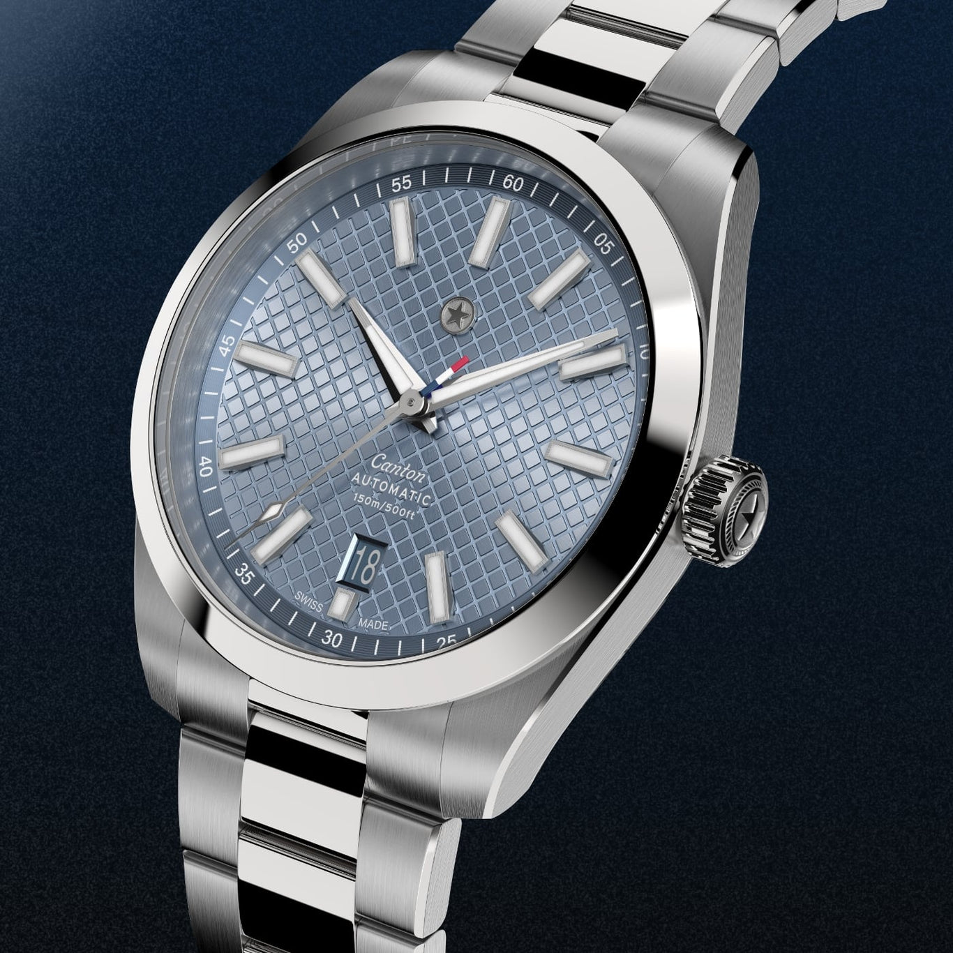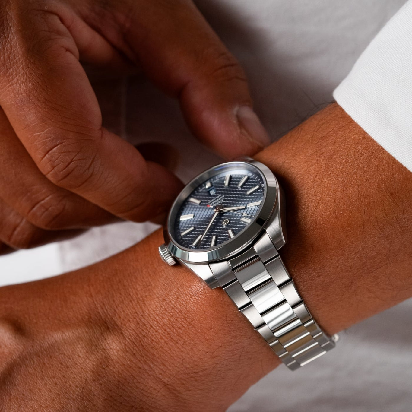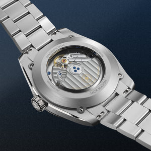 The Canton’s 316L stainless steel bracelet features a concealed, tool-free system for on-the-go micro-adjustments. The clasp has been carefully engineered with 9 levels of fine-tuning to ensure the perfect fit on a broad spectrum of wrist sizes. While being worn, all the clasp’s mechanics stay hidden out of view to preserve the bracelet’s refined and uniform look.