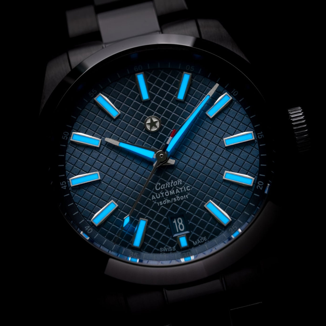 The Canton comes to life at night in an almost magical glow. Each and every index contains a deep pool of Swiss Super-LumiNova® that allows for long-lasting light emission. Additionally, the luminescent material is meticulously applied to the main handset to preserve crucial legibility in low-light environments.