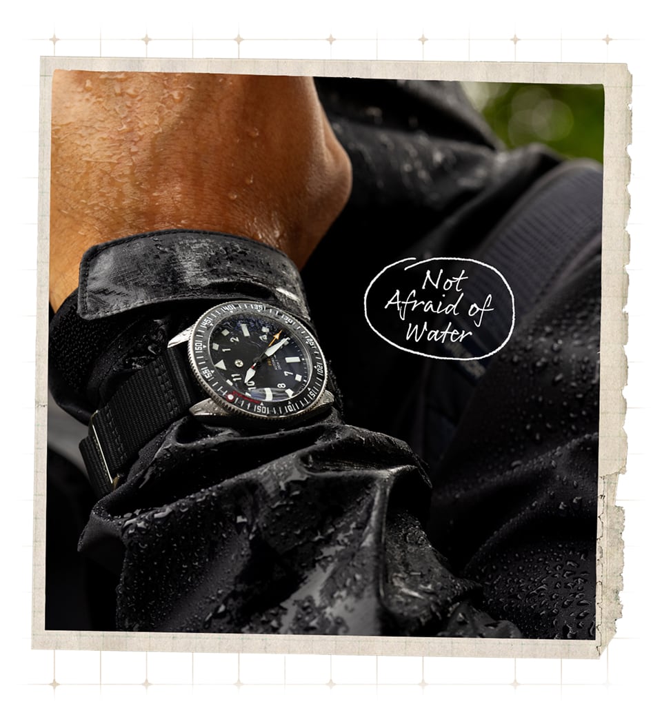 The Pursuit Pro doesn’t flinch when rivers run high, storms roll in, or the trail leads straight into the water. When there is water everywhere and failure isn’t an option, the 200 meters of certified water resistance guarantees you can stay focused on your next step, and not on your watch.