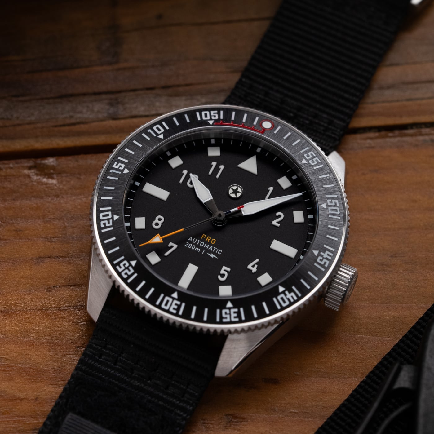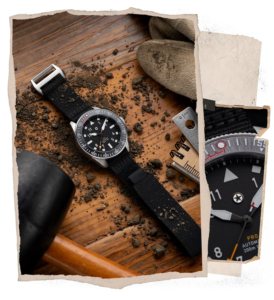 The dial has a matte finish and the legibility is great enhanced by solid forms of Lumicast® made with SuperLumiNova Grade X2 which boasts up to 87% performance enhancement over Grade X1. Inside, the Pursuit Pro is powered by a Swiss Made La Joux Perret G101 movement that is regulated in-house to +/-5 seconds per day, which is further protected by an anti-magnetic cage to maintain accuracy. With water resistance up to 200m, the Pursuit Pro is ready to take on any adventure.