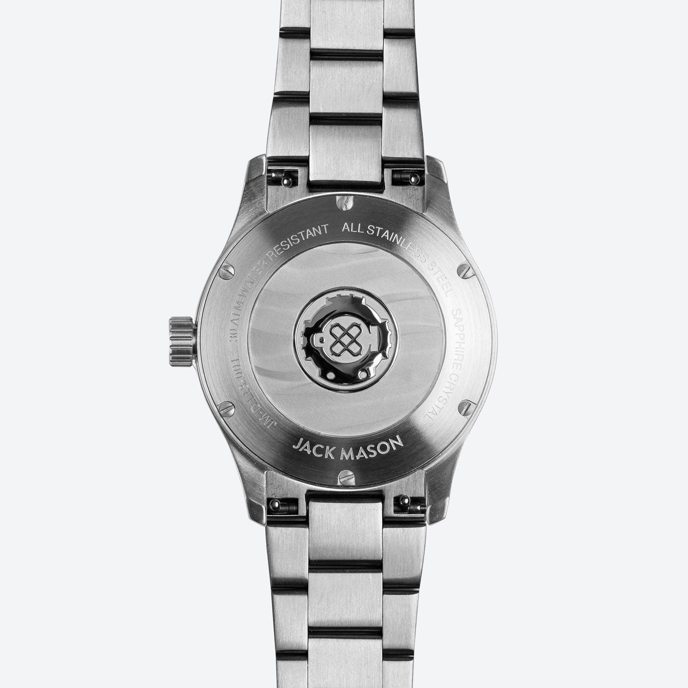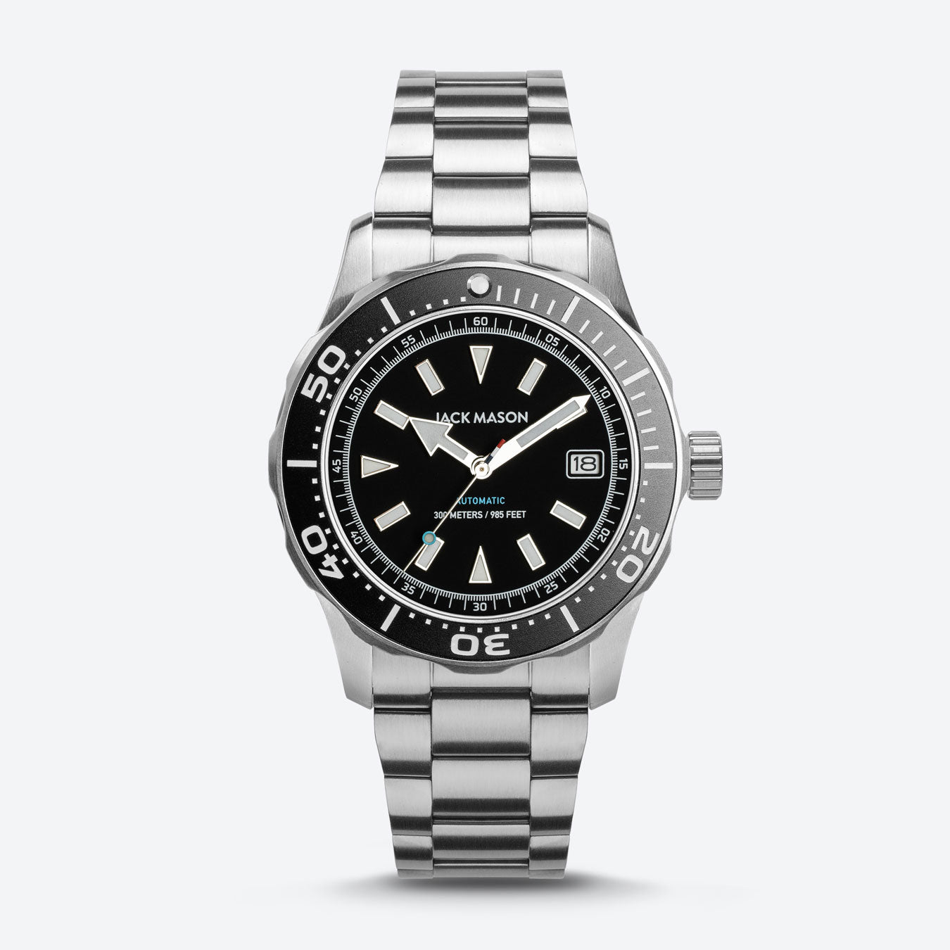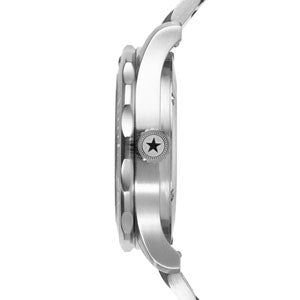 When it comes to a feature-rich diver watch, the Seatrek Automatic box set has it all. The 316L stainless steel case, featuring a screw-down crown and sapphire crystal, is assembled and tested for water-resistance of up to 300 meters. The movement is a Seiko (SII) Caliber NH35A which houses 24 jewels and has a power reserve of 41 hours. The matte black dial features dual-colored Swiss Super-Luminova®️ markings for high legibility. The same luminescence is also featured on the anodized aluminum 120 click uni-directional bezel with colors that correlate back to the hands. The tapered stainless steel bracelet is fitted with quick release pins and also features a diver’s extension in the clasp. The Seatrek Automatic box set comes with a free rubber strap.