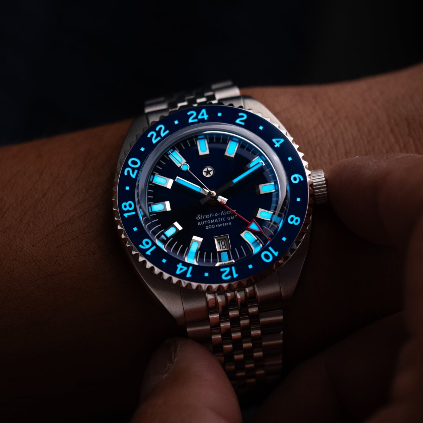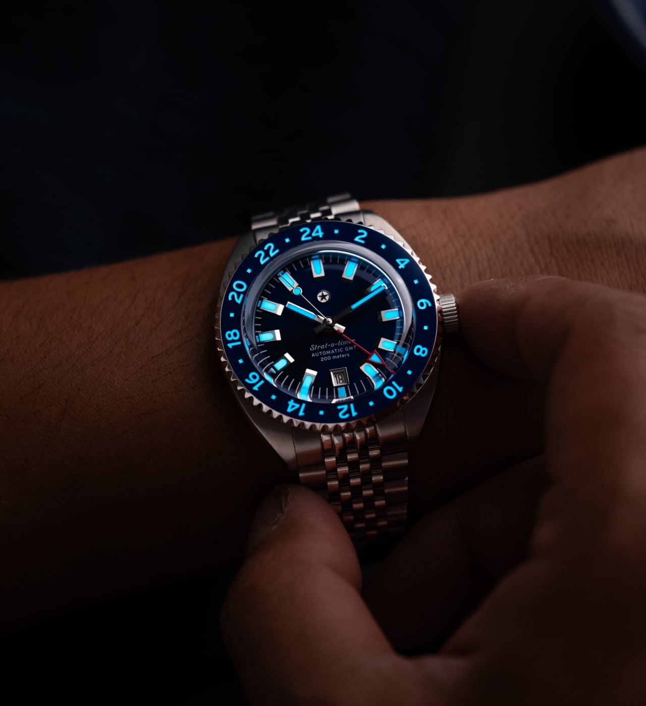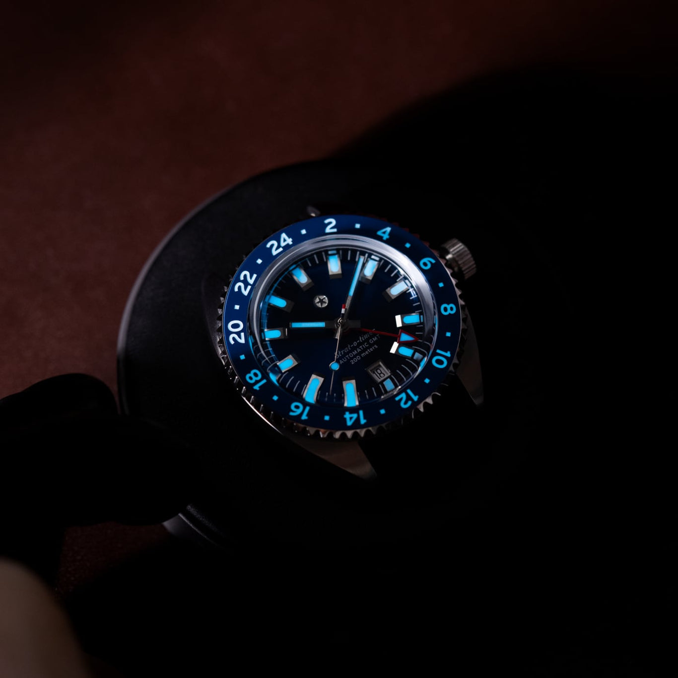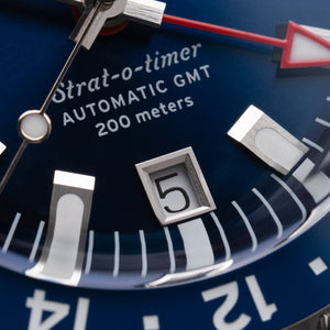 The Strat-o-timer GMT celebrates one of the most iconic watches in history. Housing the Miyota 9075 automatic GMT movement, the Strat-o-timer features jump hour hand making it a traveler's GMT. The bezel features a ceramic insert with Superluminova markings. With a vision of becoming a legacy brand in our home state of Texas, the Strat-o-timer is assembled, and the movement regulated, in the USA.